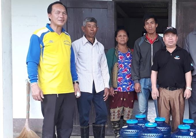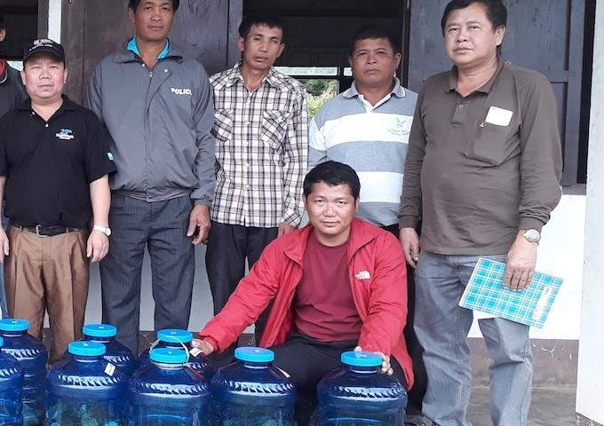 【写真1】ムアン村で収穫した蜂蜜を買い取ってくれたサイカム氏(茶色シャツ着用の男性)
