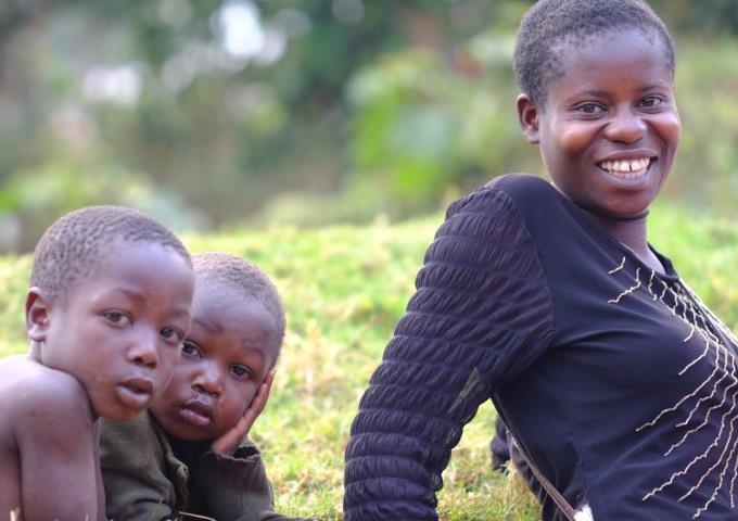 【洋裁訓練を終えた女性と、その子どもたち】