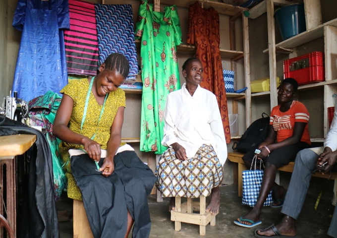 そんなフィオナさんは2015年から3年間、テラ・ルネッサンスで社会復帰の支援を受け始めました。保護されてから約1年後のことです。前半の1年半は、社会復帰支援センターで、洋裁訓練、ビジネス講習、読み書きや計算などの基礎教育、平和教育、歌やダンスの授業を受けました。そして後半の1年半は、実際に洋裁店を構えて、ビジネスの実地訓練を行ってきました。