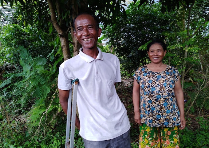 ヴィさんは1989年、クメール・ルージュの兵士だった際に、現在の自宅から3キロ離れた場所で、地雷被害に遭われました。ヴィさんの住むこのカムリエンの地は、最後までポル・ポト派の拠点になった場所です。多くの地雷が埋められました。