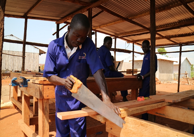 しかし、彼は、紛争に巻き込まれて負った深い傷を抱えながらも決して人生の歩みを止めることはありませんでした。マシューさんは、今年度からテラ・ルネッサンスが南スーダン難民居住区で実施する職業訓練に出会いました。ここでは、マシューさんのように2016年の紛争によってウガンダ北部に逃れてきた南スーダンの難民たちが中長期的に自立をして生活をしていけるように、木工大工や洋裁・服飾デザインの技術を習得できる環境があります。以前は家でふさぎ込んでいたマシューさんですが、現在は、職業訓練を通じてできた友達と話すことを楽しみながら、訓練に打ち込んでいます。