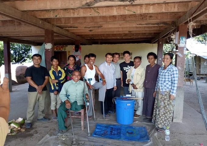 JICAパートナー事業としてカンボジア王国バッタンバン州カムリエン郡の地雷被害者などの紛争被害にあった障害者100世帯への生計向上支援として、11月からご近所さん同士のグループで、家畜の薬を造るワークショップを始めました。