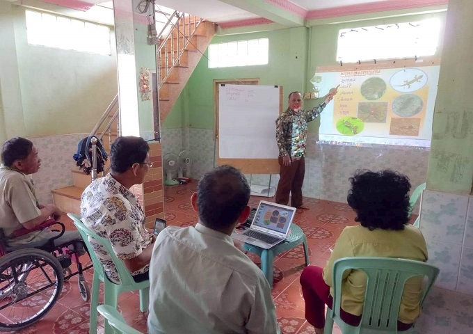 3月26日に2年目の養蜂対象5世帯へ技術訓練を実施しました。訓練は、事業1年目の2017年5月にタイのチャンタブリ県の養蜂センターで訓練を受けた現地NGO:CRDNASEの農業専門家が実施しました。