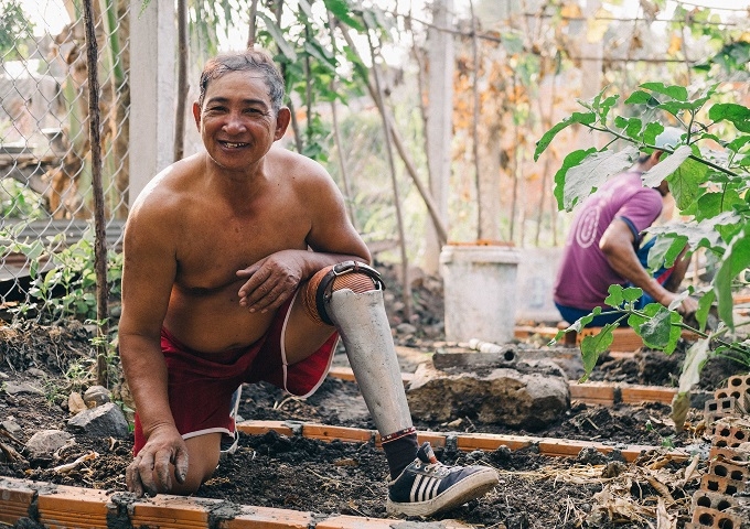こう語るのは、テラ・ルネッサンスの技術訓練を受け、野菜の栽培に励む地雷被害者のチェン・ホウトさん。