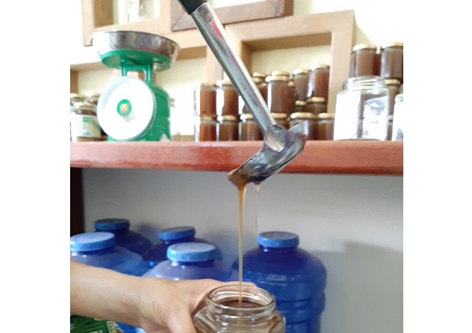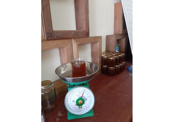 自分たちの手できれいにパッケージングされたはちみつを並べ、養蜂組合メンバーたちの期待は高まっています。