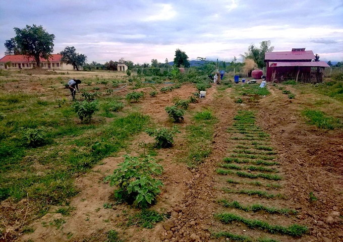 ロカブッス村では、昨年野菜を栽培できなかったサウさんも、また野菜の栽培を再開してくれました。まだ雨が降ったり、降らなかったりと不安定な天候ですが、家の後ろのため池をさらに拡大し、水を確保していました。ため池により野菜や家畜、そして村人たちも生活ができるようになっている状況を見ていただくことができました。