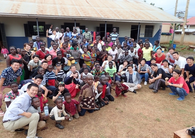 【ウガンダ事務所兼職業訓練センターにて、ウガンダドリプラツアー集合写真】
