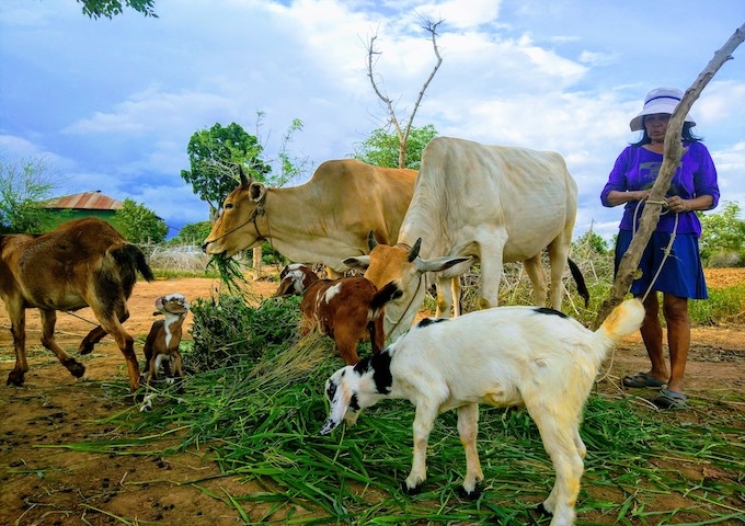 ただし、私たちが進めているのは単なるヤギの飼育ではありません。牛やアヒル、鶏、豚、野菜の栽培など、村でできることを複数組み合わせて、リスクを回避し、しなやかに生活できるレジリエンスを高めているのです。