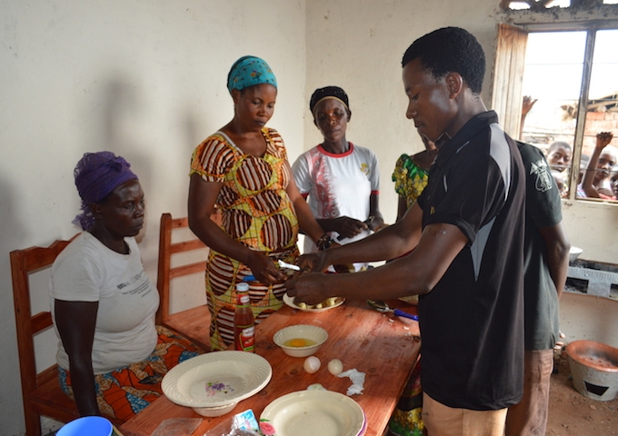 138名を対象に、石鹸作り・ヘアドレッシング・調理・養鶏・山羊飼養・養豚・小規模ビジネスの7分野の技術訓練を数週間〜数ヶ月実施しました。