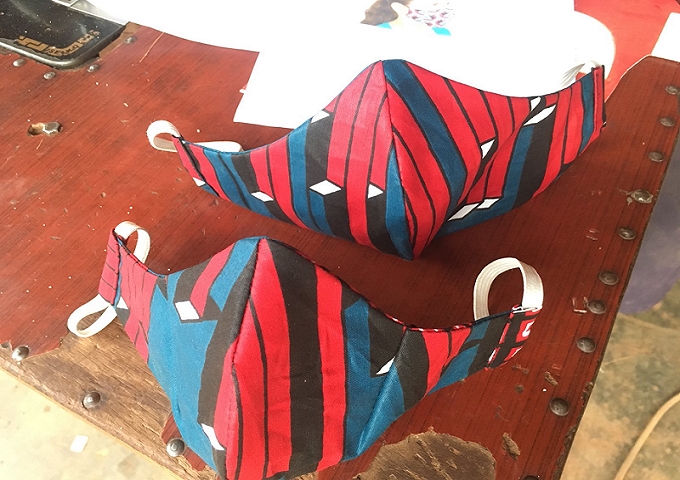 センターで洋裁技術訓練講師をしているジョセフが「布マスク」サンプルを作ってくれました。