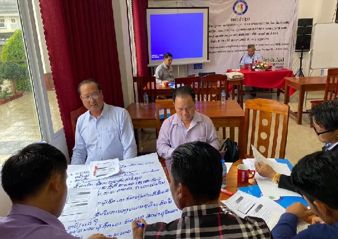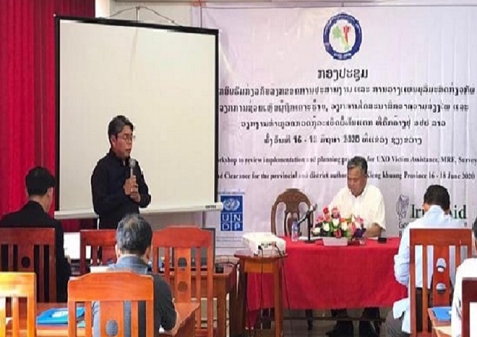 MREの実施過程、MRE実施後の評価法、MREの計画立案、支援する不発弾被害者の選抜、不発弾被害者のサポート後の評価法についての研修が行われ、シエンクワン県PRA(Provincial Regulatory Authority of UXO/Mine Risk Action Sector)および社会福祉部門(Social Welfare Sector)から職員約20名が参加しました。