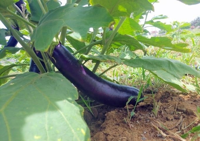 2ヶ月前から茄子の苗木を準備し、オーガニックの肥料を混ぜ、畑の準備をしてきました。8月には、1047本の苗木を植えて、実がなり始めるところまできました。