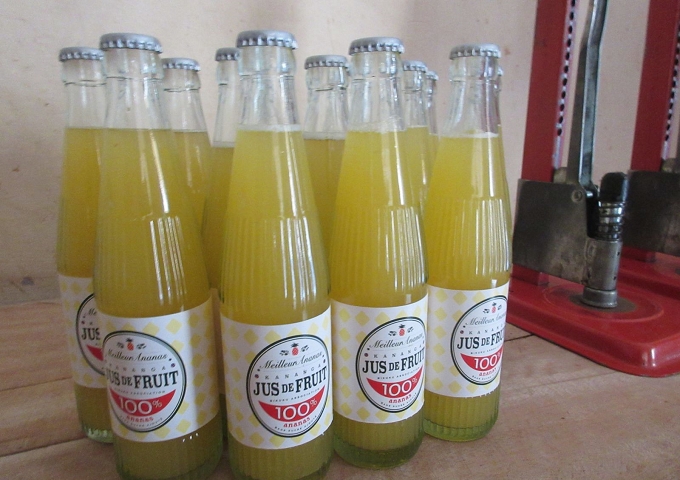 写真は今年になって開発した新製品です。こちらのジュースの販売が徐々にのびつつあります。砂糖も一切使わず、パイナップル果汁100%のストレートジュースで、今月からはレストランやホテルへの販売も再開しており大好評です。