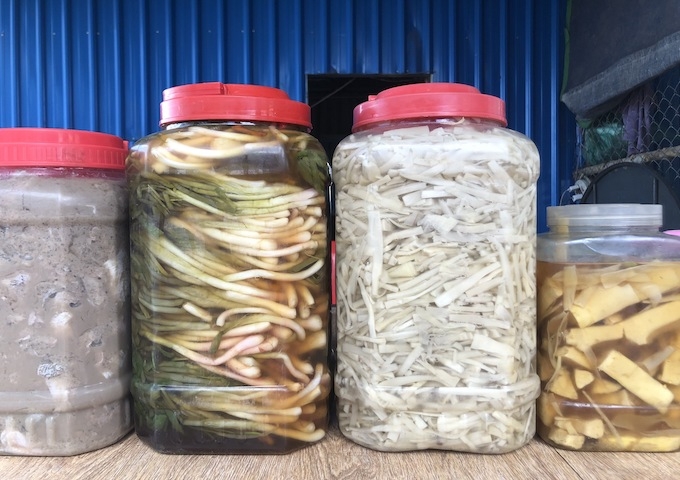 カンボジアにも長期保存に関して、昔から伝わる知恵がたくさんあります。ドライマンゴーもそうですが、他にはプロホックという魚を発酵させたカンボジアの伝統的な調味料や魚醤などもそうです。ファーマーズ・マーケットでは、ねぎやタケノコの漬物も販売していました。