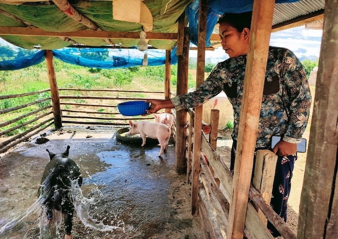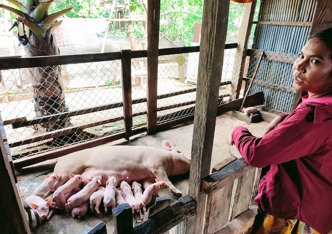 マップ・コーラープさんの世帯は、2018年に豚を貸し出して以降、US$5,665の収入に繋がっています。8月には、また子豚が生まれました。コーラープさんのように豚飼育を希望する世帯は多く、9月中には再度豚を追加購入し、さらに4世帯へ貸し出す予定にしています。
