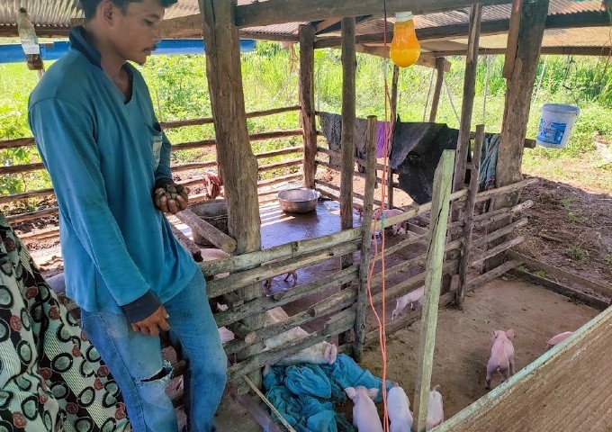 2016年に牛やヤギ、2017年に鶏、アヒルの家畜銀行の支援を開始しましたが、一番最後に養豚の家畜銀行を4世帯から始めました。