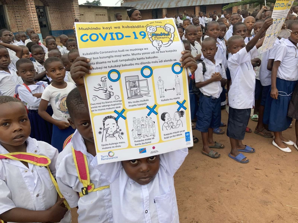 【コンゴの新型コロナ対策支援として感染予防の啓発を子ども達に行っている様子】
