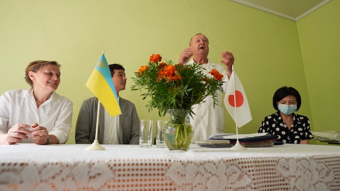 私たちは輸送方法の調査・調整にご協力したのみだったのですが、病院が簡単なセレモニーを開いて下さり、そこにはウクライナ厚労省とウクライナ市役所からも来賓の方がいらっしゃっていました。院長先生のスピーチの後、弊会のスタッフも大変僭越ながら日本でお聞きしていた洛和会の皆さまの想いなどをスピーチで紹介させていただきました。