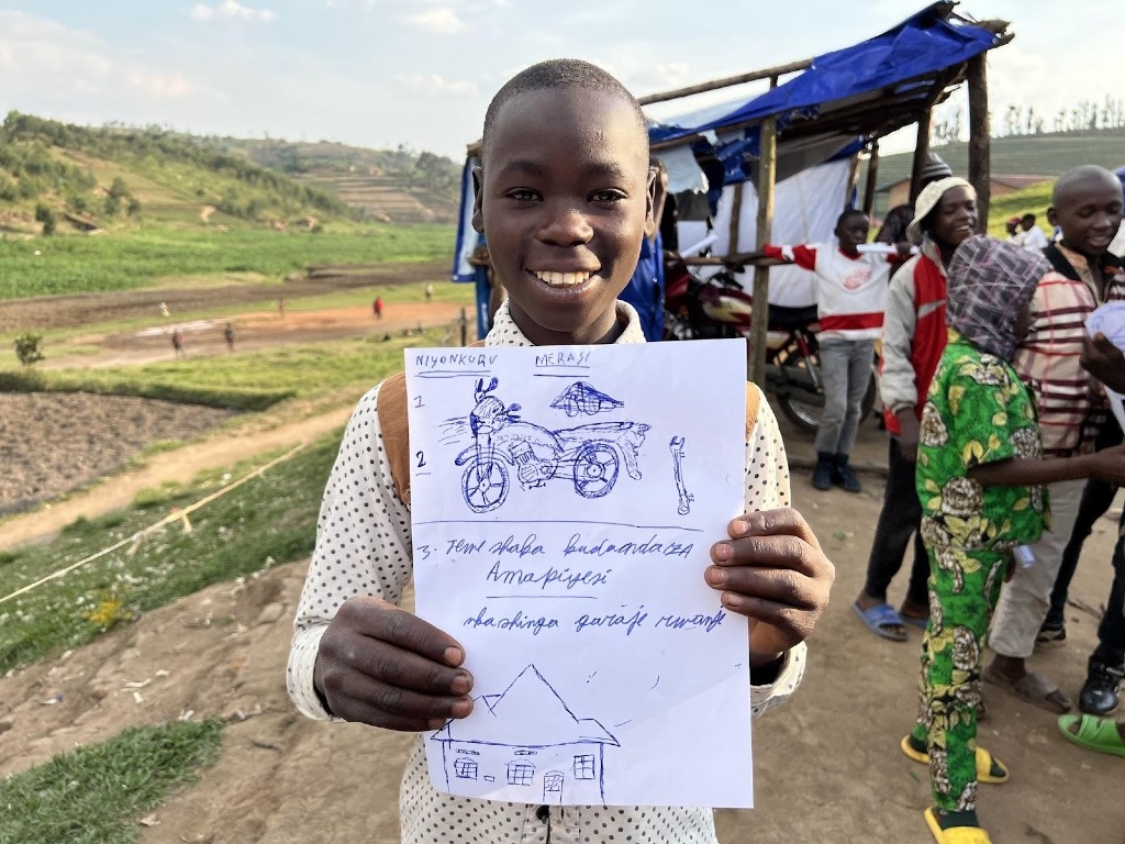 ブルンジの子ども達の理想の未来、一番多かったのは「自分の家を建てて家族と暮らすこと」。その他、「車/バイク/牛などの家畜を買いたい」「自分のバイク修理ガレージを持ちたい」「ミュージシャンになりたい」など、いろんな夢がありました。