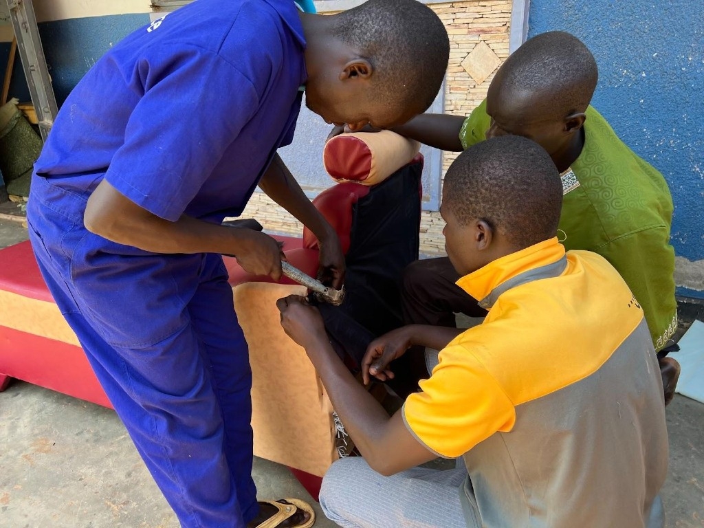 職業訓練施設に行って、私自身もとても驚きましたが、これらは、木工大工クラスの受益者の方々が訓練で制作したソファなのです!