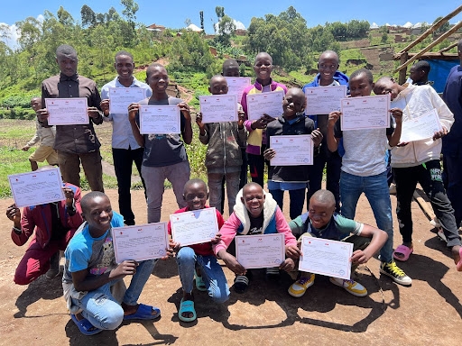 ブルンジのカヤンザ県にて2021年4月から実施中の子どもの保護と自立支援プロジェクト。今年3月には2年次受益者41名の証書授与式を行いました。