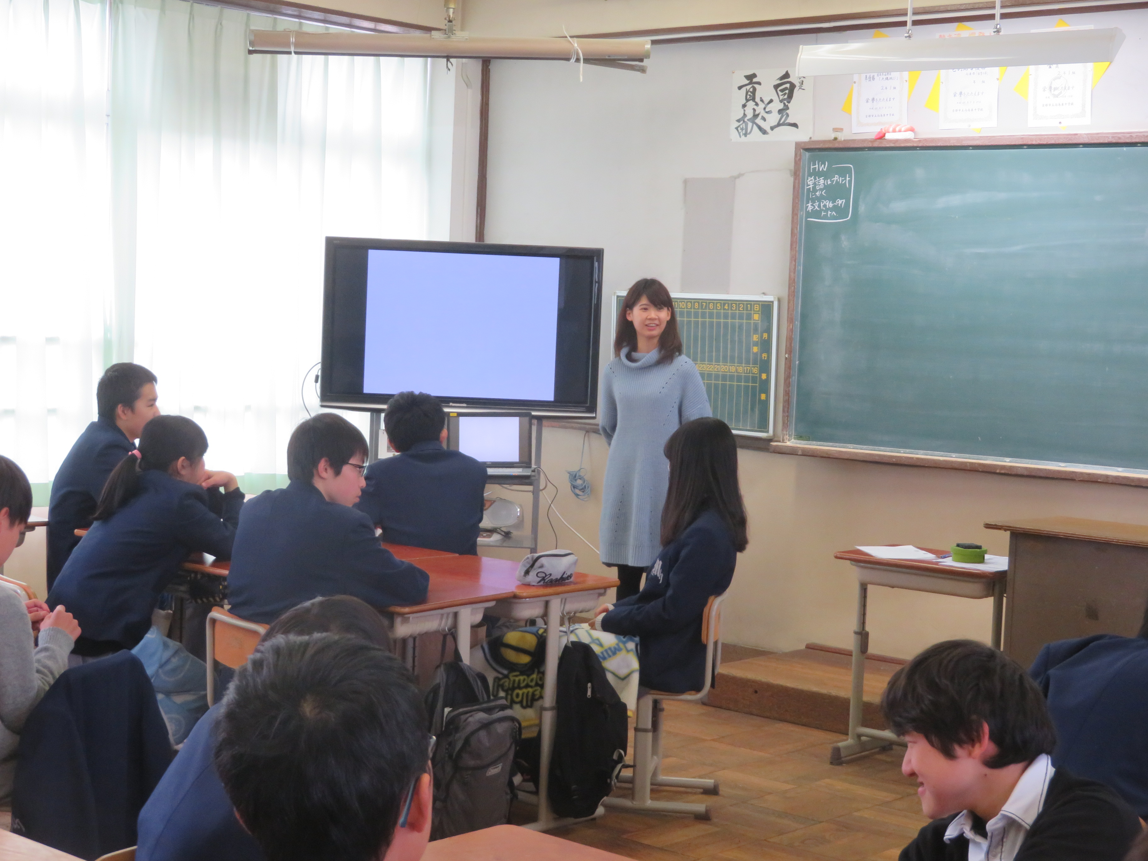 4クラス同時に4人のインターンが講演会など